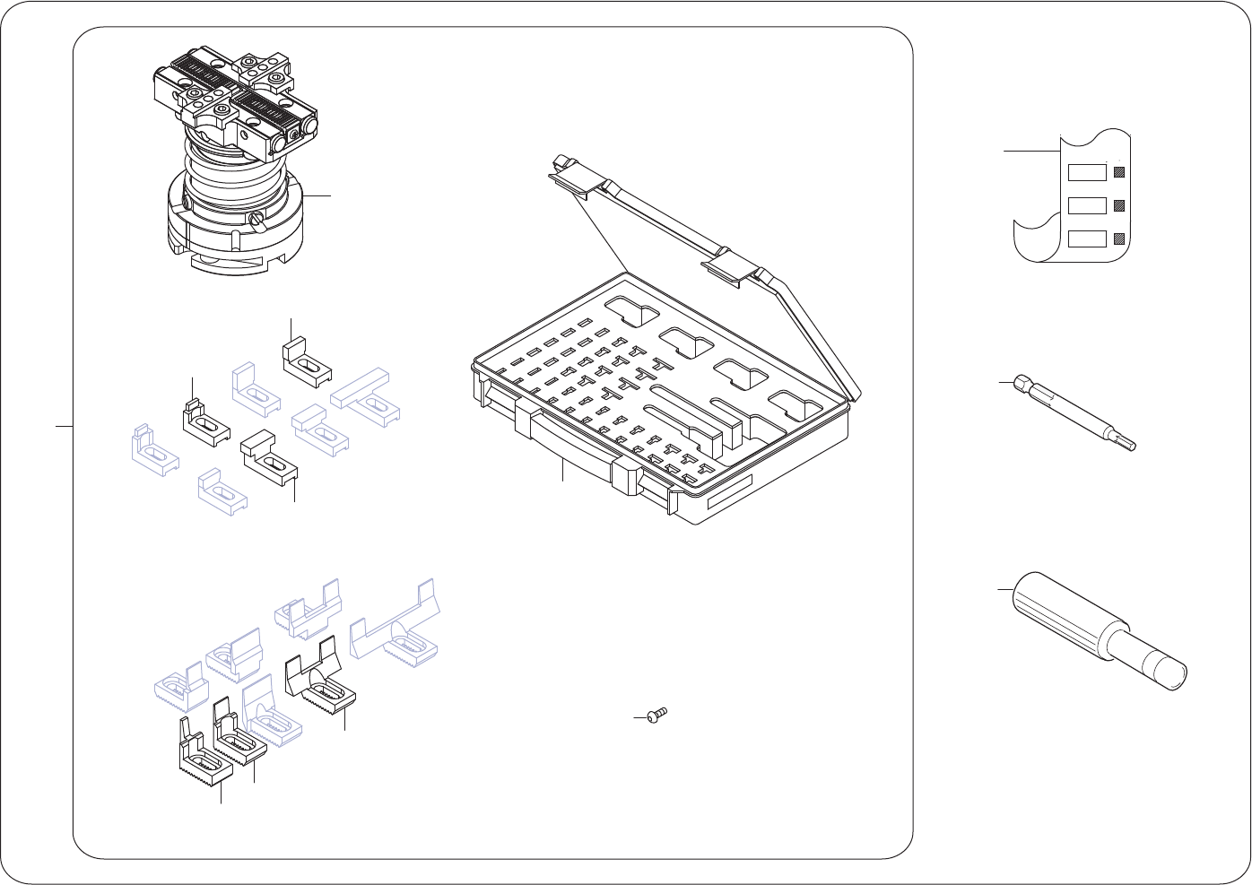5□□ 5□□ 5□□ 2 3 20 21 22 23 24 5 7 9 15 16 18 ';ỗ⏝࣓࢝ࢳࣕࢵࢡᇶᮏࢭࢵࢺ DX-MULTIPURPOSE MECHANICAL CHUCK (BASIC SET) 8 4 P TS - N A D X H D - 0 6