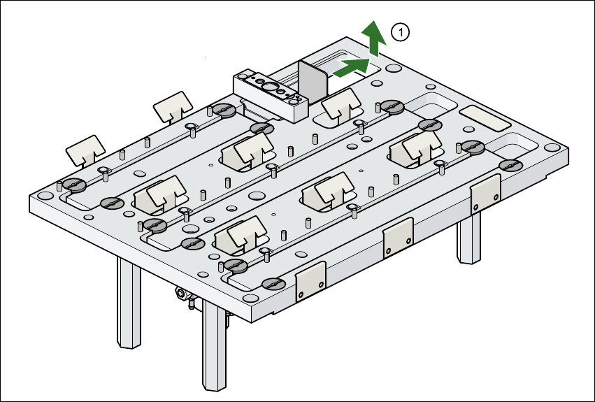 Æ 要取出吸嘴盘,应从吸嘴盘边拨开弹簧卡子 (图 7.1 - 4 中的 1)。将吸嘴盘从托盘中提出。
