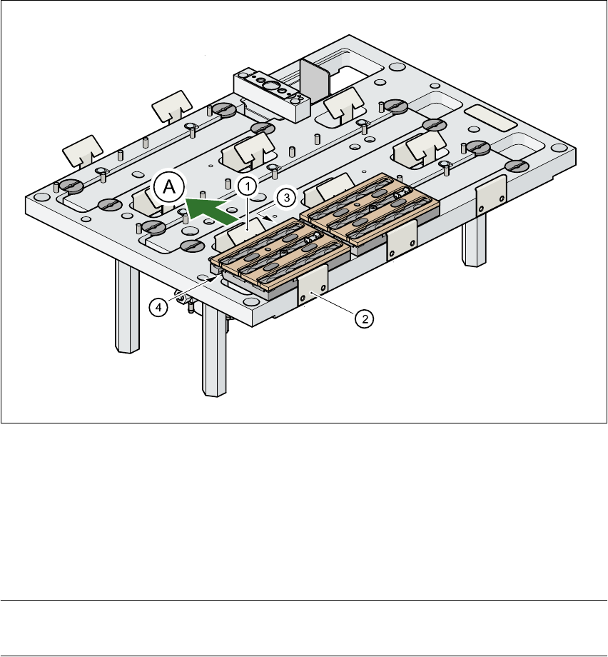 确保在插入吸嘴盘时,使对中销滑入对中孔 (3) 和槽 (4)。 7