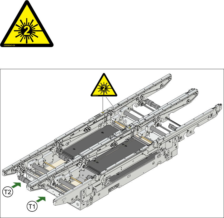 2.2.5 PCB 传送导轨上的 “二类激光”警告标签