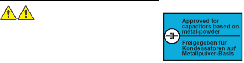 在处理基于金属粉末 (例如,钽)电容器时,会有危险,表现如下: