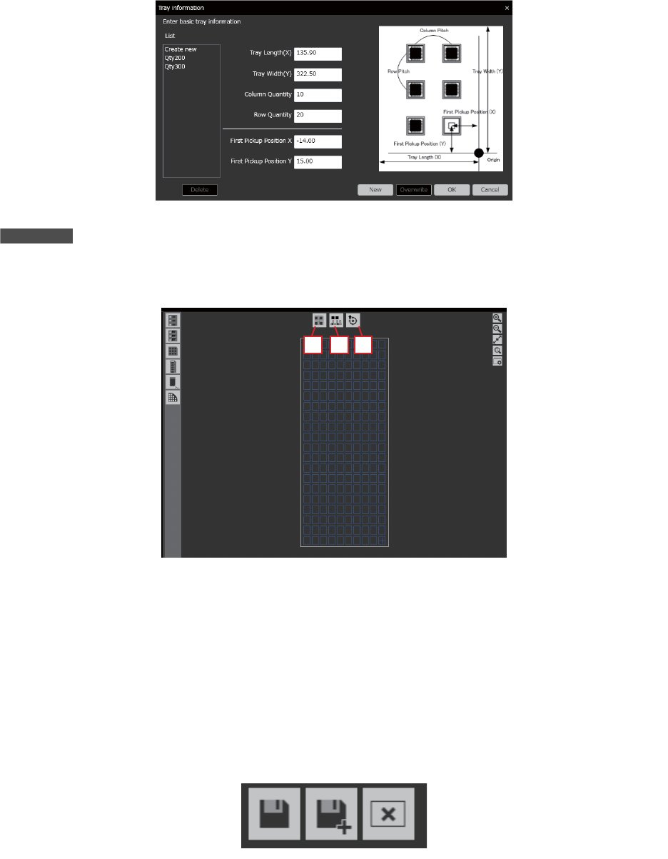 请在 「tray information setting」对话框内创建料盘数据。请输入料盘信息。