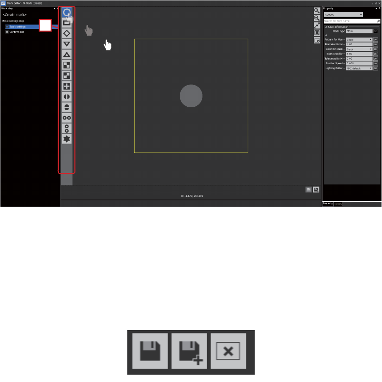 5. 定位点数据的管理 OPE-NEXIM-007S0 190 Nexim 操作手册 5.3 跳过定位点的编辑 5.3.1 基本设置步骤 基本设定 在属性区输入个数据的数值。 完成确认 请保存或别名保存。 41PRG-0098-Ea 41PRG-0079