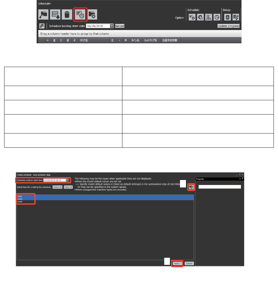 开始预定时刻 在创建排产计划前时为空白栏。排产计划创建完毕时,显示出