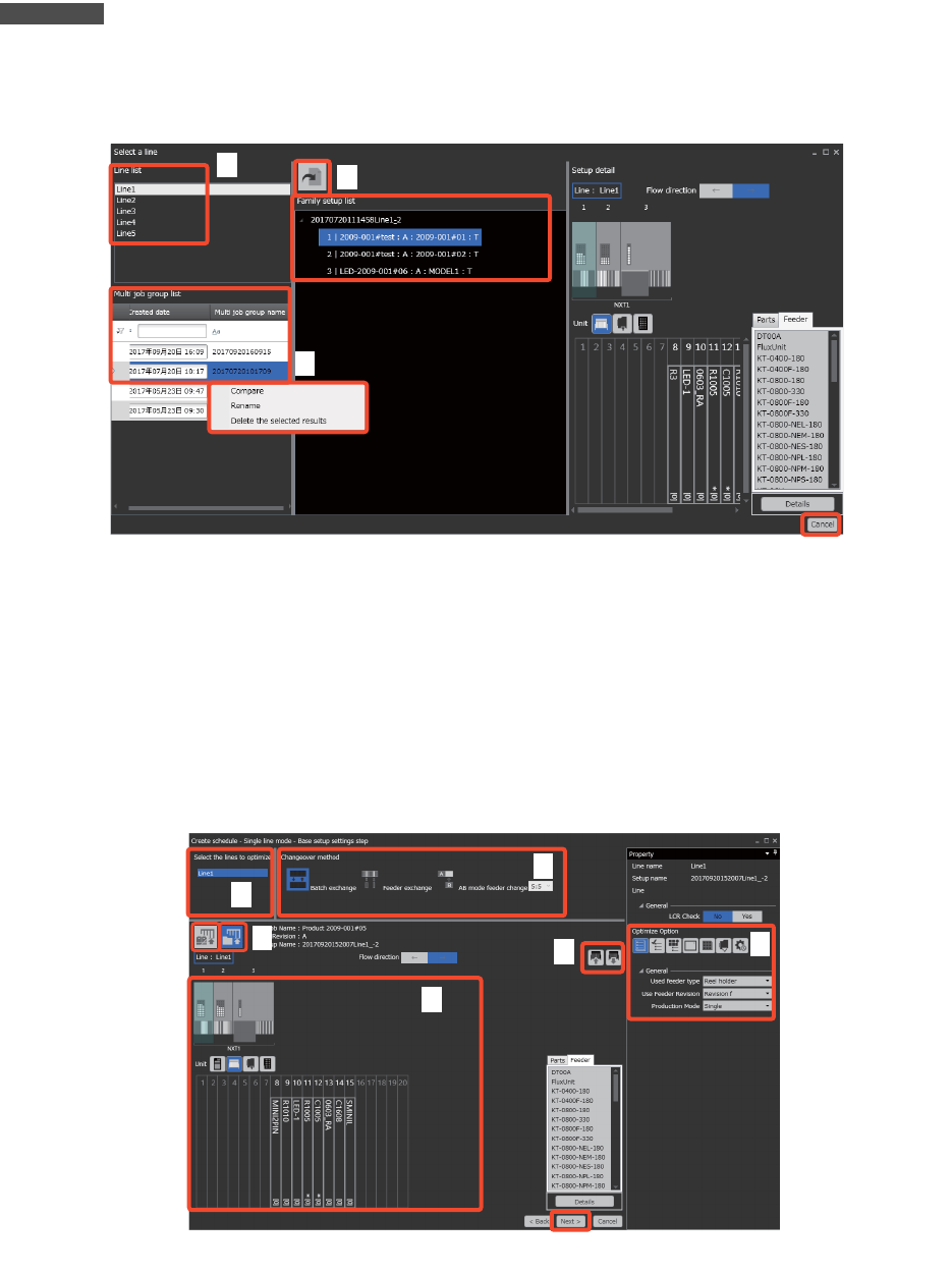 3. 想在下面的步骤确认使用的 Setup、多 Job 生产线平衡的结果后决定时单击。在此确认的 Setup,在下