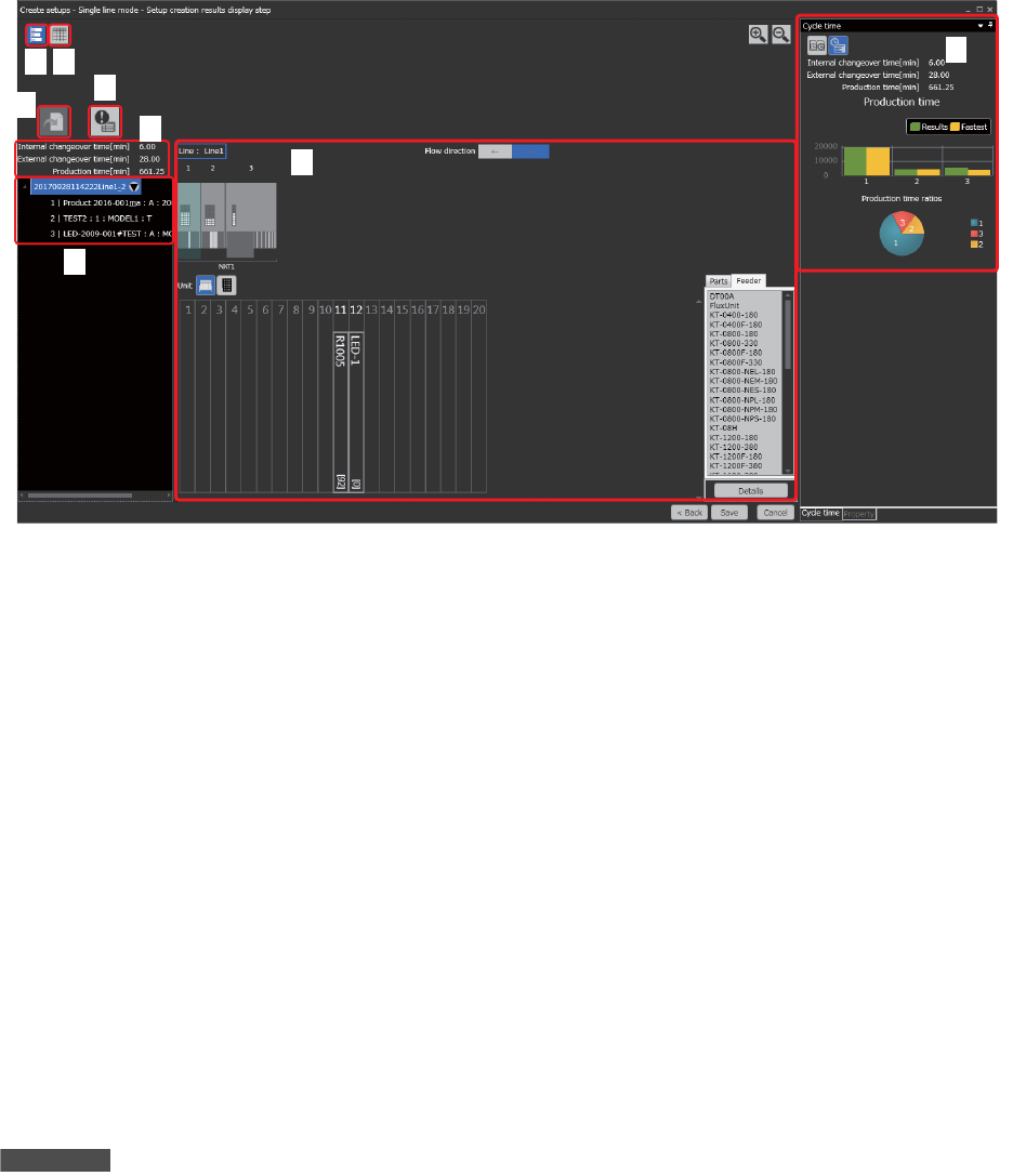 优化完成后,显示出换线群组、Setup 的状态、周期时间、换线时间等的结果。此外,可以显示结果的详