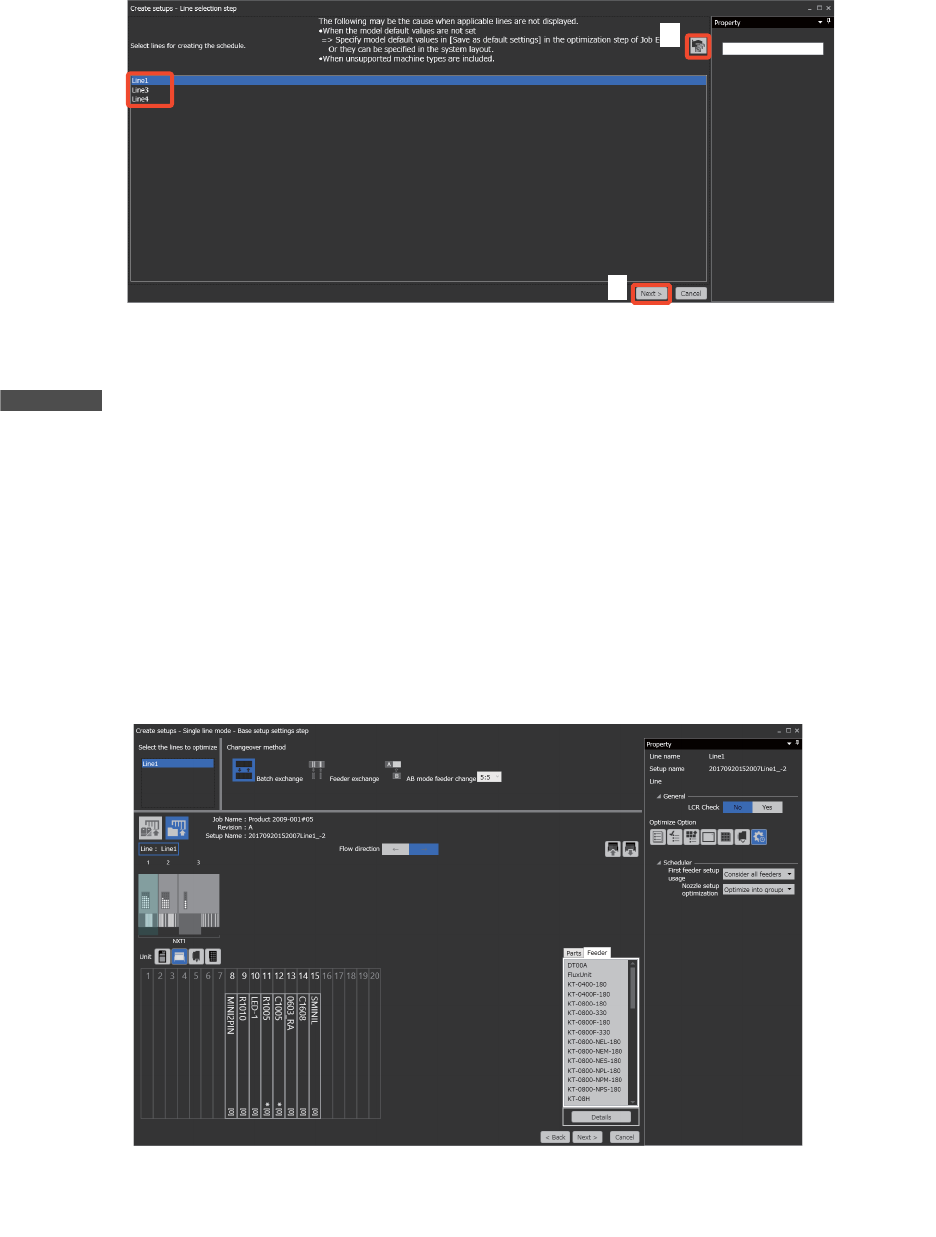 2. 想在下面的步骤确认使用的 Setup、多 Job 生产线平衡的结果后决定时请单击。详细内容 " 6.2.5 排产