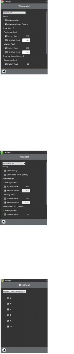 设置生产进展的显示单位、注 ( 黄色显示 ) 以及警告 ( 红色显示 ) 时的阈值。