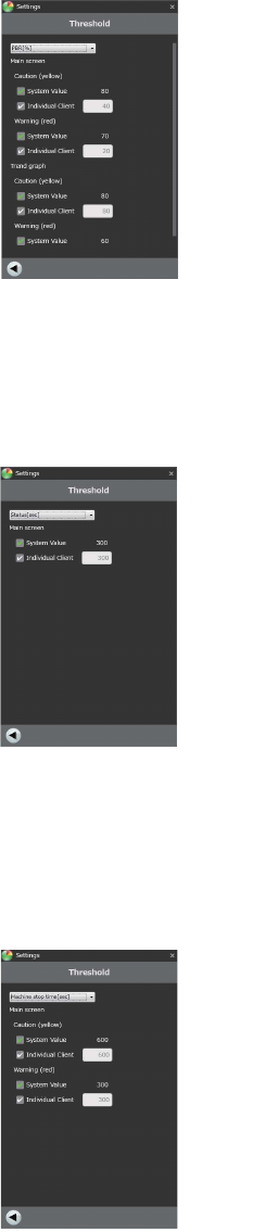 设置主画面中显示机器状态的持续时间的阈值。各阈值的设定,请选择系统值 ( 固定值 ) 或者客户端值 (