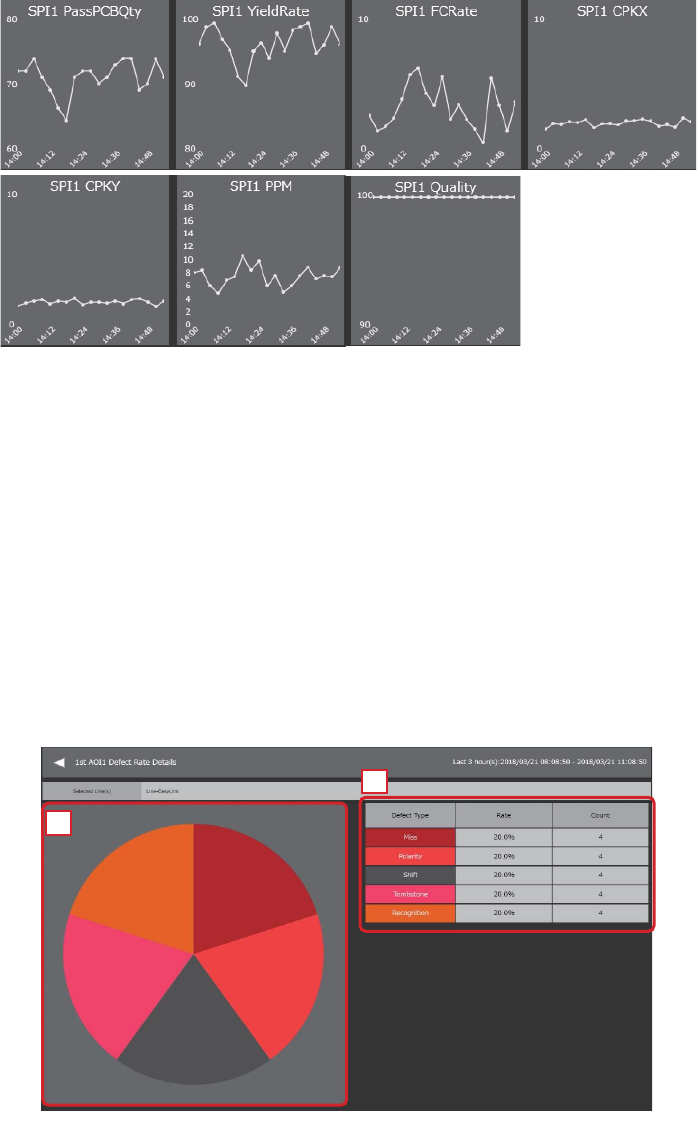 8. 进度 / 监控 / 分析 OPE-NEXIM-007S0 312 Nexim 操作手册 各种走势图 显示一下项目的走势图 PassPCBQty/ YieldRa te/ FCRate / CPKX/ CPKY/ PPM/ Quality 最新数据将以 [ 设置 ]-[ 通知功能 ]-[ 阈值 ] 中设置的阈值为基准,图表的背景颜 色变为黄色 ( 注意 ) 或红色 (警 告) 。 8.1.10 子画面的详细说明 (AOI) 本小节将…