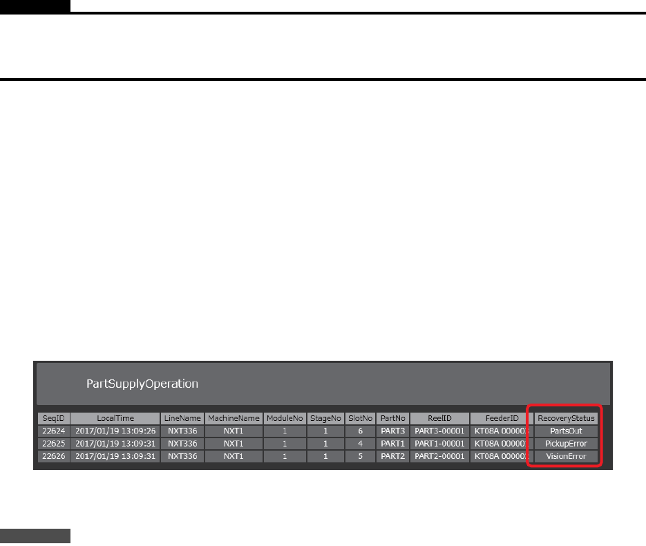 机器状态是 [Parts Supply] 时的操作 (在 Recovery 次数达到上限的状态