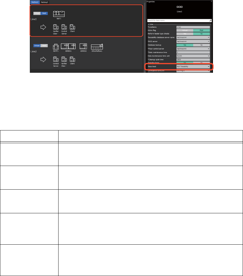 跟踪级别可以通过系统布局的生产线的属性 [ 跟踪级别 ] 变更。