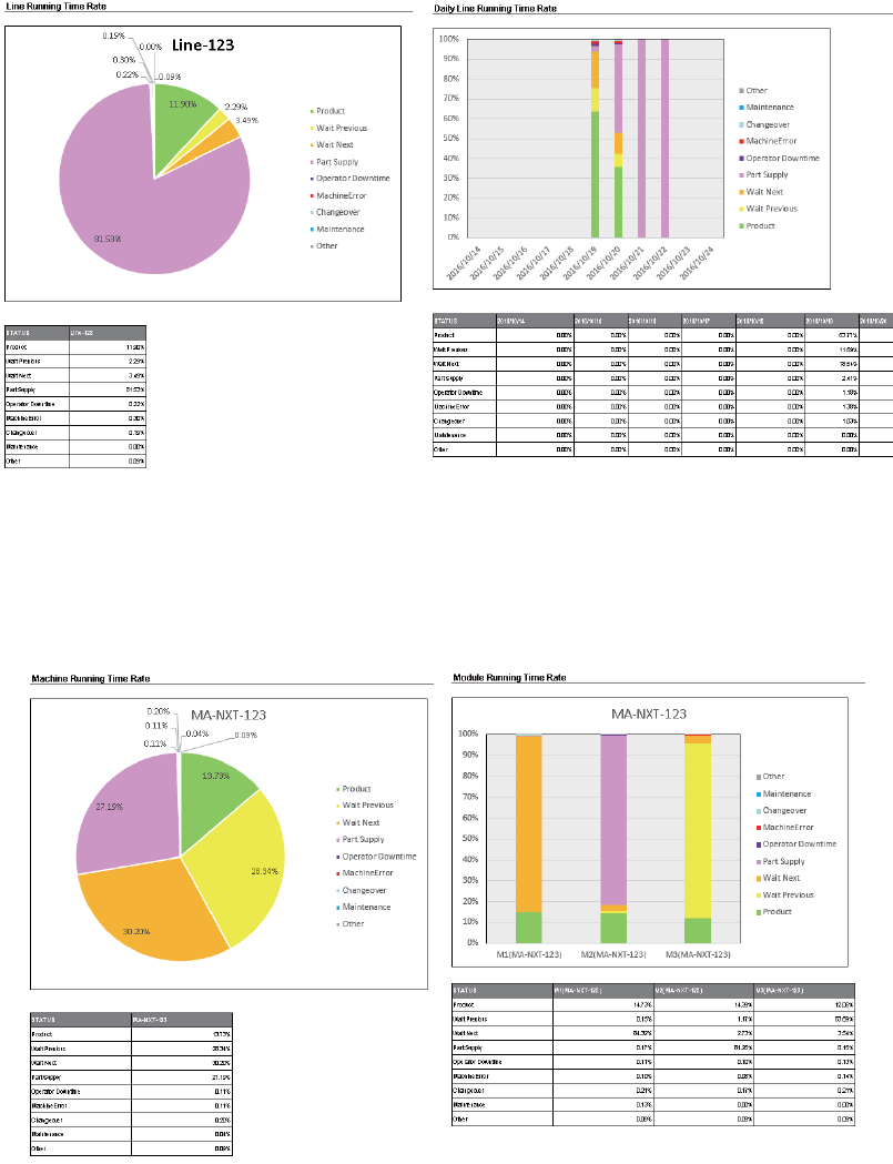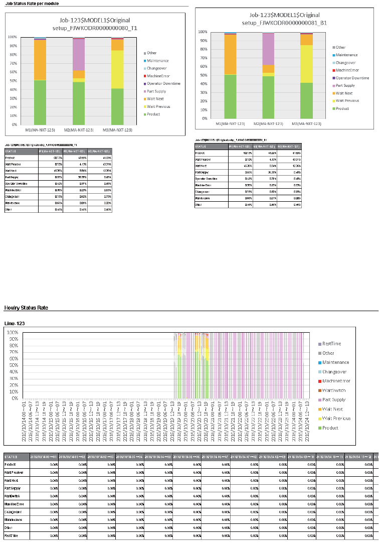 按 Job、机器或模组统计的机器状态的占有率。通过该信息可以掌握需要改善的机器状态或找出机器运转