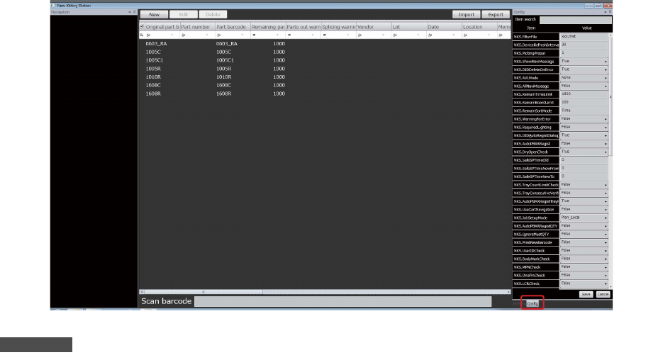 NKS Local 动作设定可以通过 Nexim[ 运用 ] 或 [ 库存管理 ] 的画面右侧的履历区域右下方的 [Config]Tab