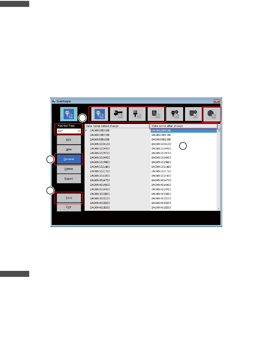 本小节主要说明如何对已登录的规格数据的名称进行变更。