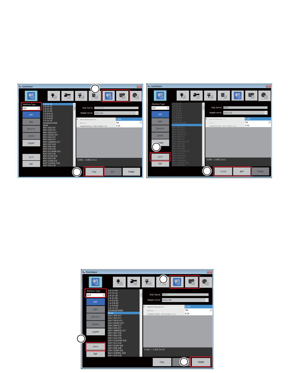 如果数据类型是 「吸嘴设定」或 「吸嘴置放台设定」,则该操作无法执行。