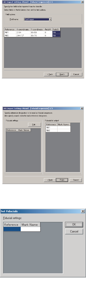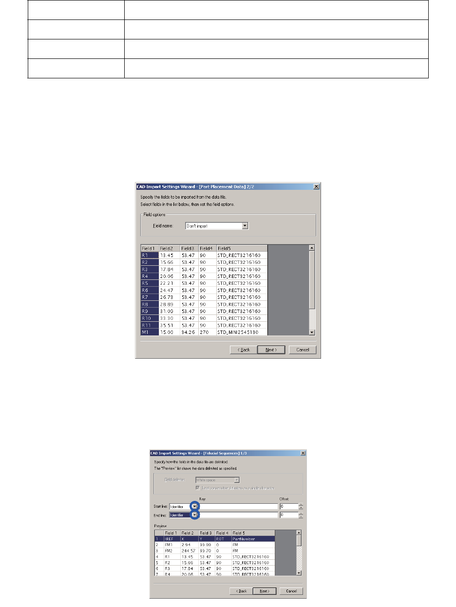 10. 请指定 fiducial data 的起始行和结束行。指定方法和 [CAD Import Settings Wizard - [Part