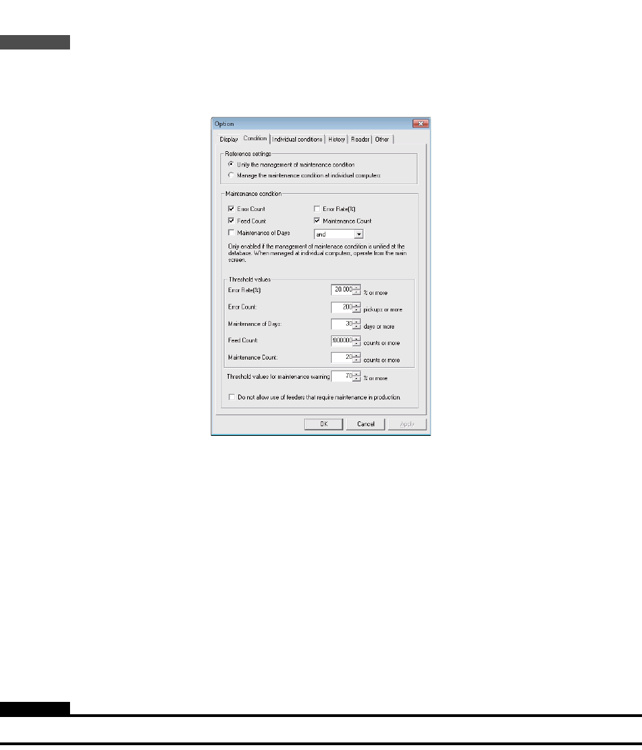 b. [ 保养条件 ]:在 [ 参考设定 ] 内选择了 [ 用数据库进行统一管理 ] 时生效。