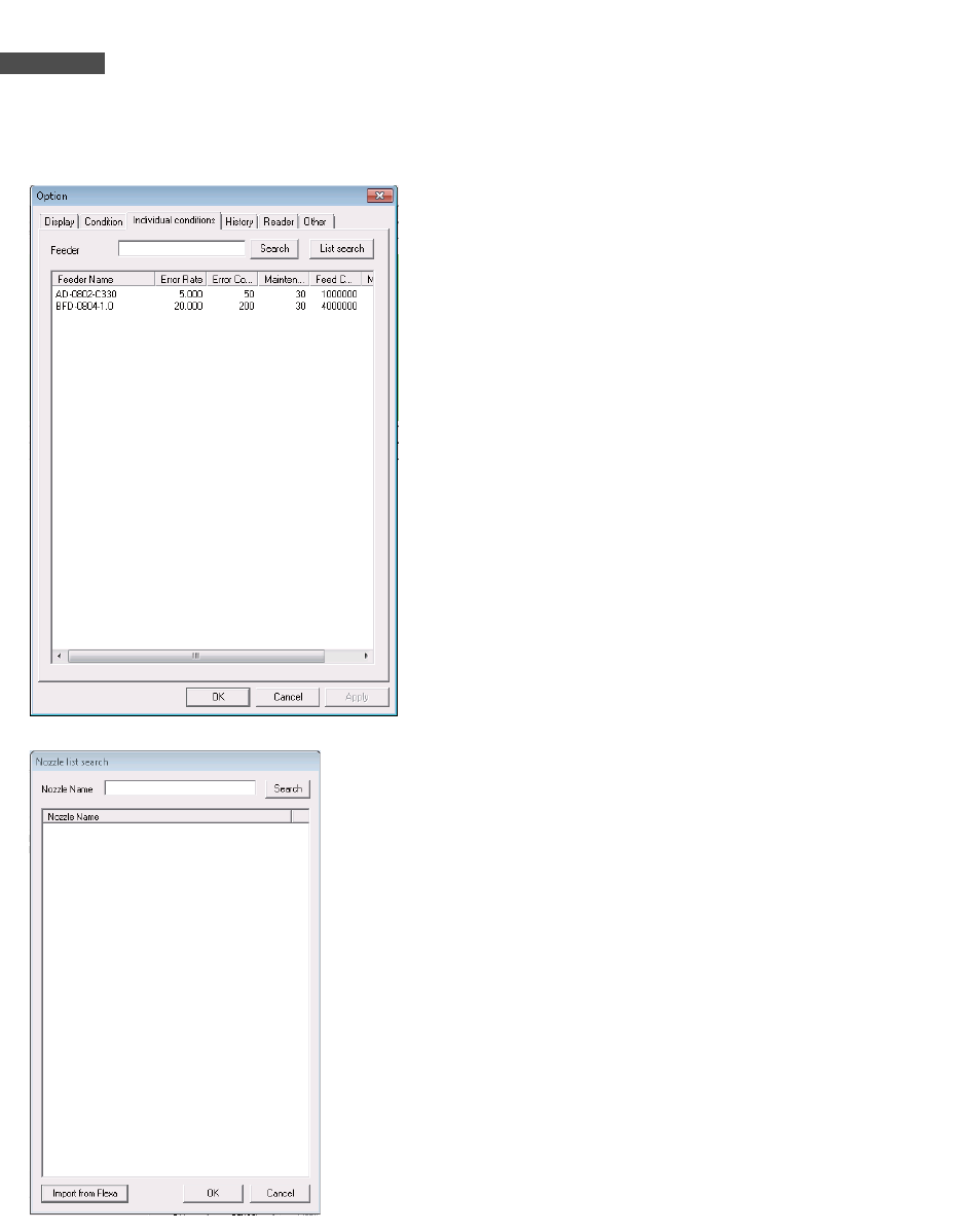 如果不是每个供料器名都有对应的阈值的供料器,那么在 [ 设定 ]-[ 条件 ]Tab 标签页内设定的阈值就会生