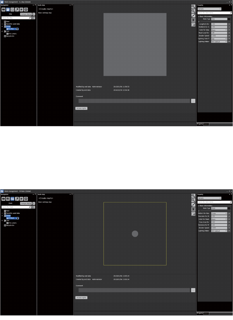 2. Smart Operation OPE-NEXIM-007S0 30 Nexim 操作手册 跳过点 进行跳过点的创建与管理。 点击数据可以查看定位点图像。还可 以在属性区内确认设置内容。可以查 看生产程序的变更内容。 钢网 进行钢网定位点的创建与管理。 点击数据可以查看定位点图像。还可 以在属性区内确认设置内容。可以查 看生产程序的变更内容。 41PRG-0098-Ea 41PRG-0225-Ea