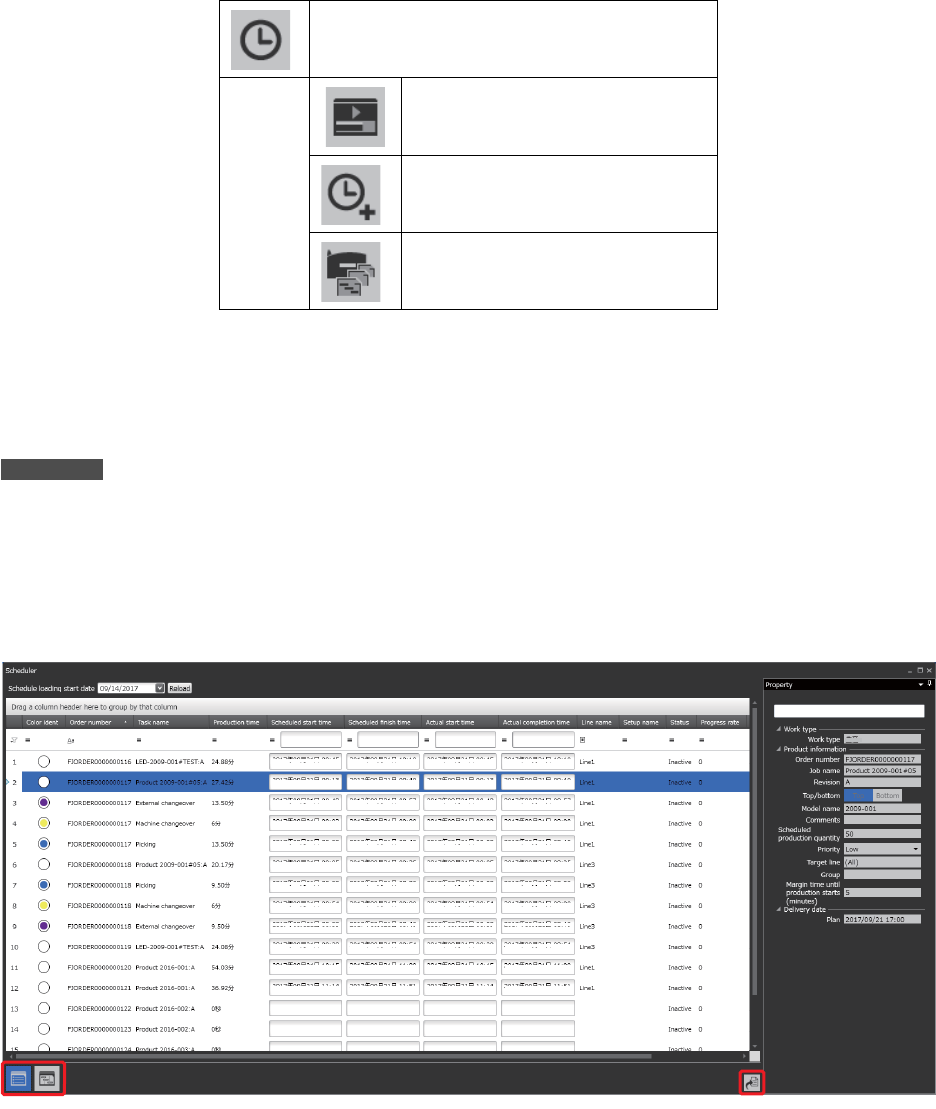 OPE-NEXIM-007S0 2. Smart Operation Nexim 操作手册 35 显示为图表 作业区的图标 对显示在任务一览画面和图表 画面上的小图标 ( 红框内的小图标 ) 进行说明。 任务一览画面 图表画面 显示为任务 以任务的形式表示排产计划 的状态。采用以任务的形式 显示时,计划内的备料作业、换线 作业、生产等任务会 以一览表的形式呈现在画面上。 显示为图表 以图表的形式表示排产计划 的状态。采用以图表的形式 显…