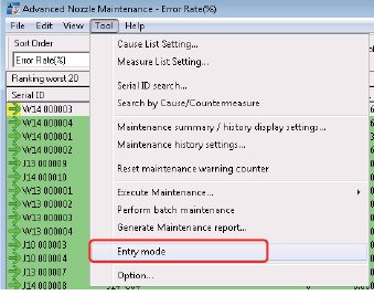 请从 [Tool( 工具 )] 选择 [Entry mode( 接受模式 )]。在
