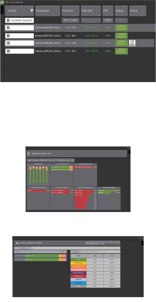 2. Smart Operation OPE-NEXIM-007S0 46 Nexim 操作手册 2.5.2 不良分析 可以显示构成生产线的所有机 器 (包含其他厂家的 SPI、AOI 等设备)的生产履历。可以显示不良电路板 的信息。因此,可以根据这些信息进 行不良分析。 使用本功能时需要用到作为选 项的跟踪功能和 Easy Link 的许可证。 关于使用方法的具体说明,请参考 「Nexim 选项功能手册」 。 41OPE-1382-E