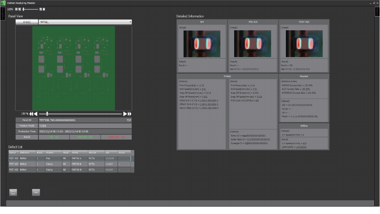 可以显示构成生产线的所有机器 (包含其他厂家的 SPI、AOI 等设备)的生产履历。可以显示不良电路板