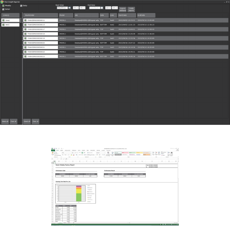 日报及周报以 Excel 形式输出,创建工厂全体的表格和每条生产线的表格。