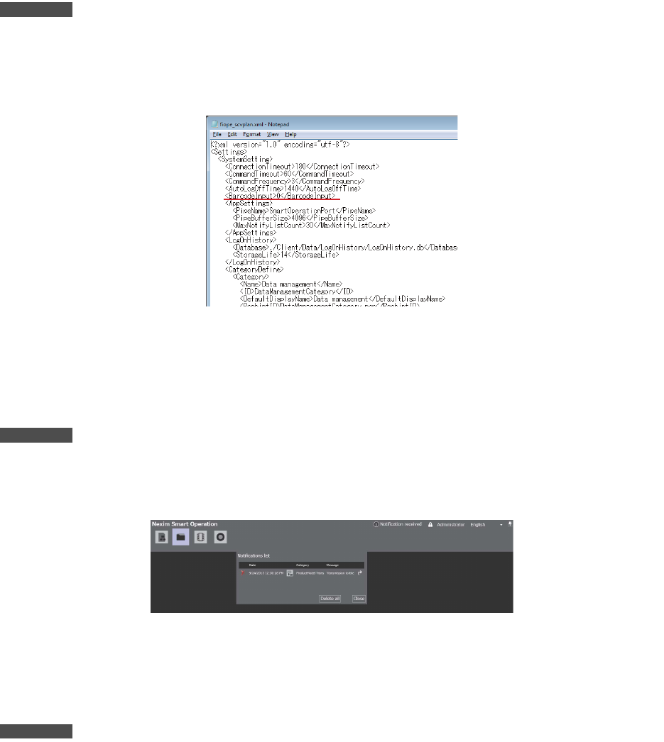 显示 Smart Operation 的通知一览表画面时,不能进行通过条形码输入的操作。