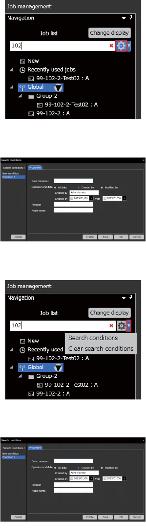 b. 不使用 Job 名检索时点击该按键。按照指定的搜索条件进行搜索。按照指定的搜索条件进行搜索。