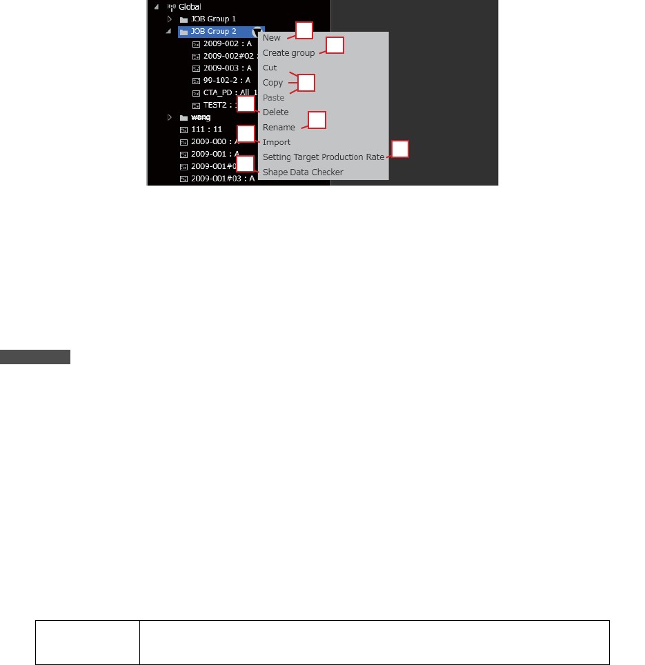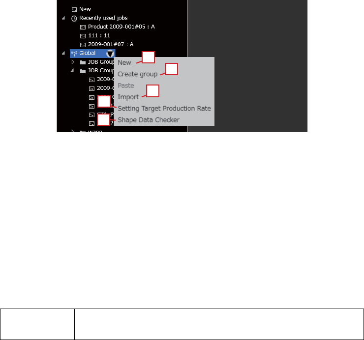 OPE-NEXIM-007S0 3. Job 管理 Nexim 操作手册 61 3.1.2 Job Group 的操作 对 Job Group 的操作进行说明。 整体 a. [New] 新建 Job。请选 择保存的群组, 然后输入 Job 名 、修订、注释。 b. [Create Group] 在选择的文件夹内创建 Job 群组。 c. [Import] 导入选择的 Job。 在导入 Job 的同时一并导入元件数据。 导入的方法如下。 …