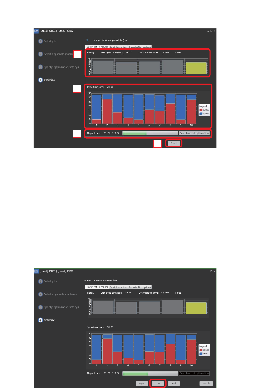 完成优化后,变成下图中的画面。如果点击 [Save] 键,周期时间最好的时候的信息就会被保存到