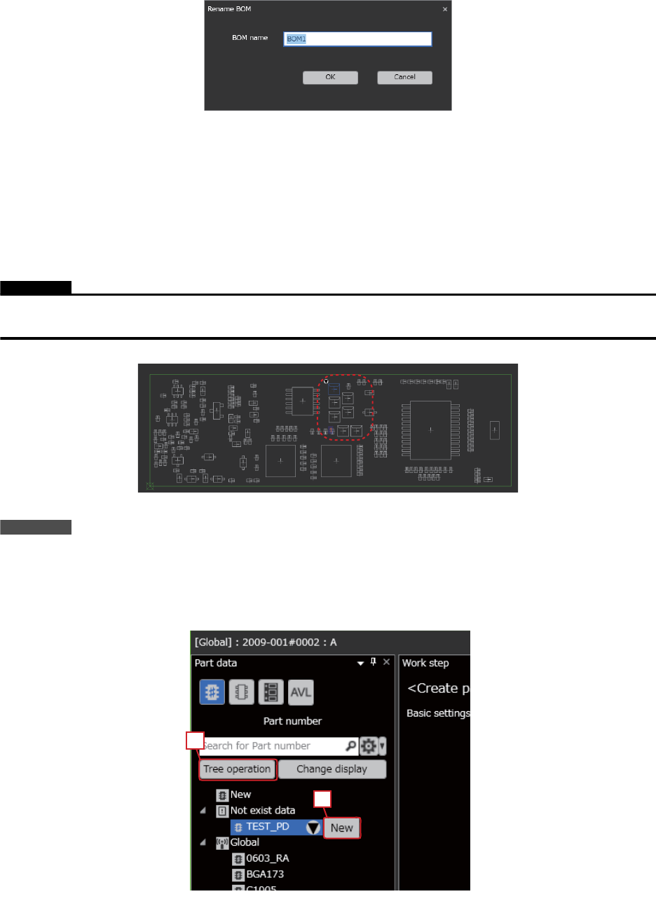 3. Job 管理 OPE-NEXIM-007S0 76 Nexim 操作手册 a. 在 [Not exist d ata] 群组中创建被选元件号码。 选择 Group 内要保存的元件数据,然后在 「Part number name」内输入 元件数据名。 b. 通过 [Tree operation] - [Create Not Exis t Part],创建所有的 [Not exist data]。 备注 • 新创建或者编辑元件数据时,…