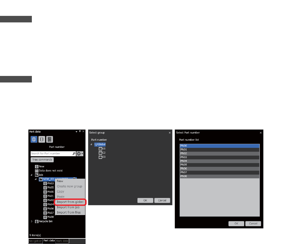 显示的菜单请参照后述的 " 导入和导出元件数据 " 以及 " 4.1.2 关于元件数据的菜单 " 请参照。