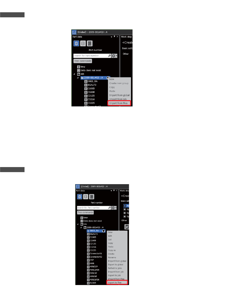 OPE-NEXIM-007S0 3. Job 管理 Nexim 操作手册 81 Import from files 1. 请先选中 Job 并右击,然后再点击 [Import from fi les]。 备注 即使选中 Job 内的任意数据,[Import from files] 也会显示。 2. 画面上自动弹出用于选择文件的对话框。请先选中作为导入 对象的数据,然后再点击 [Open]。数据 被导入 Export to files 1…