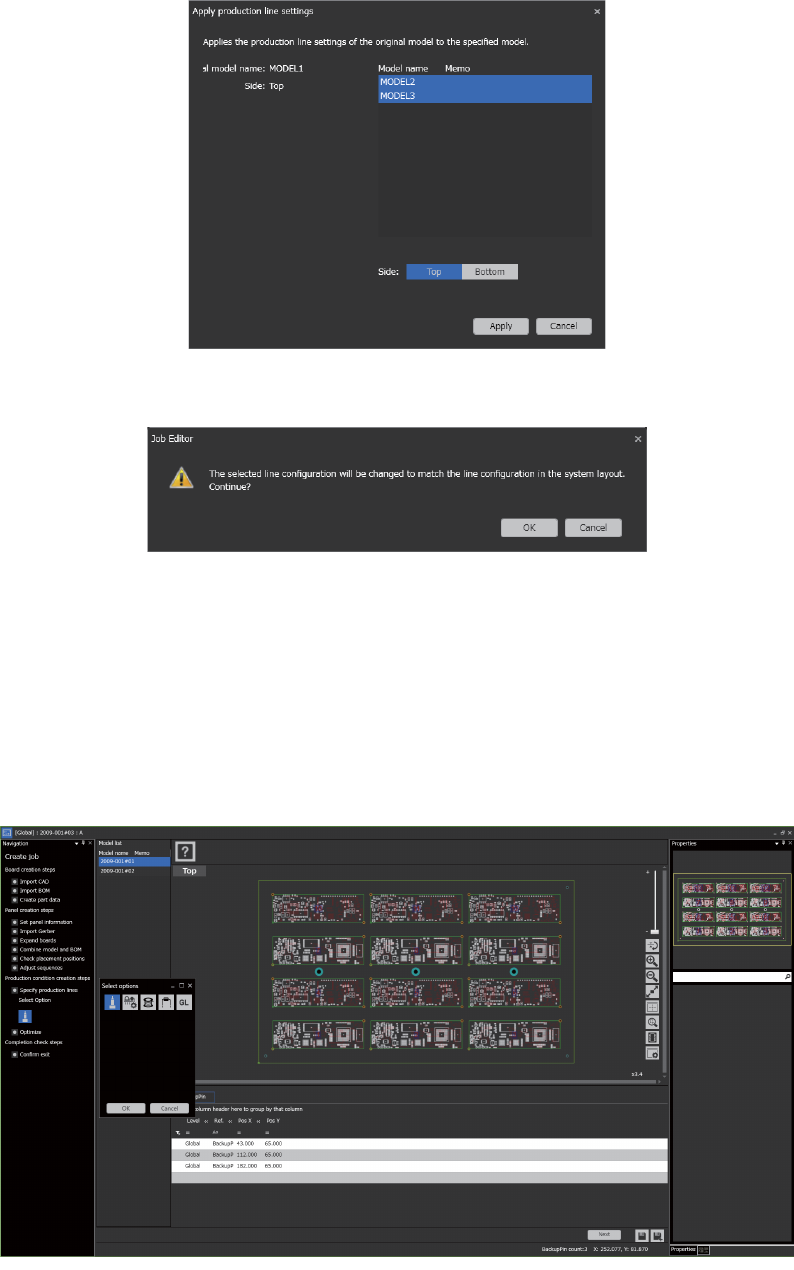 设置生产线时,各生产 Model 以及贴装面都要进行设置。
