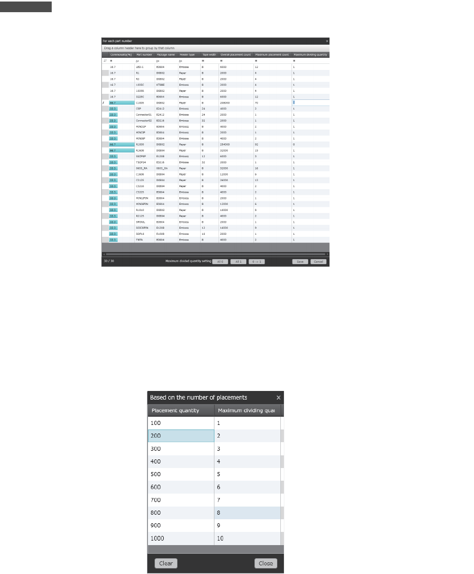 如果在贴装点数设定中也输入设定值时,分割数量少的一侧的设定值优先。