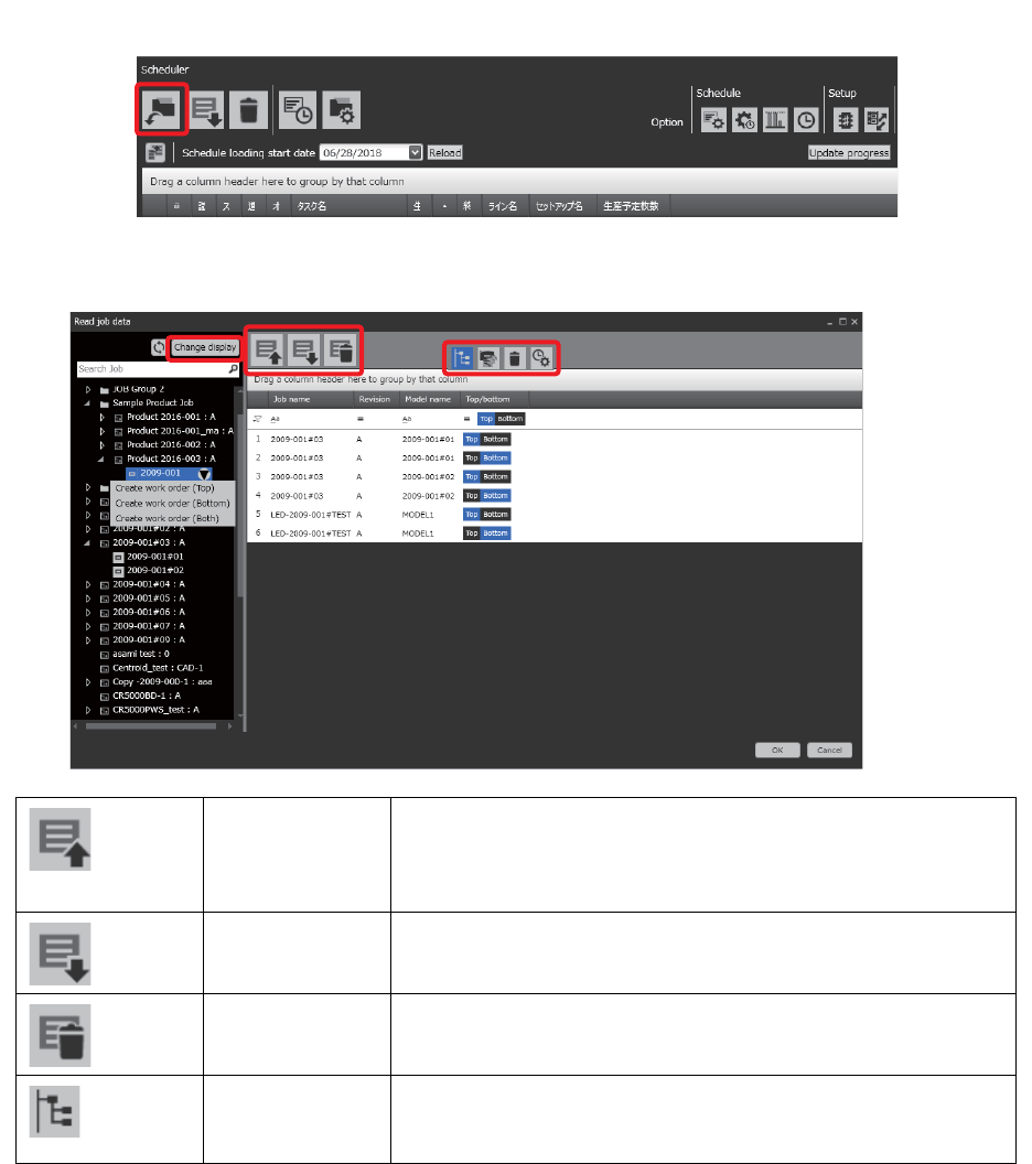 2. 显示出 [ 读取 Job 数据念 ] 对话框。左侧是显示 Job树、右侧为显示 Task 区域。关于各图标,如下所示。