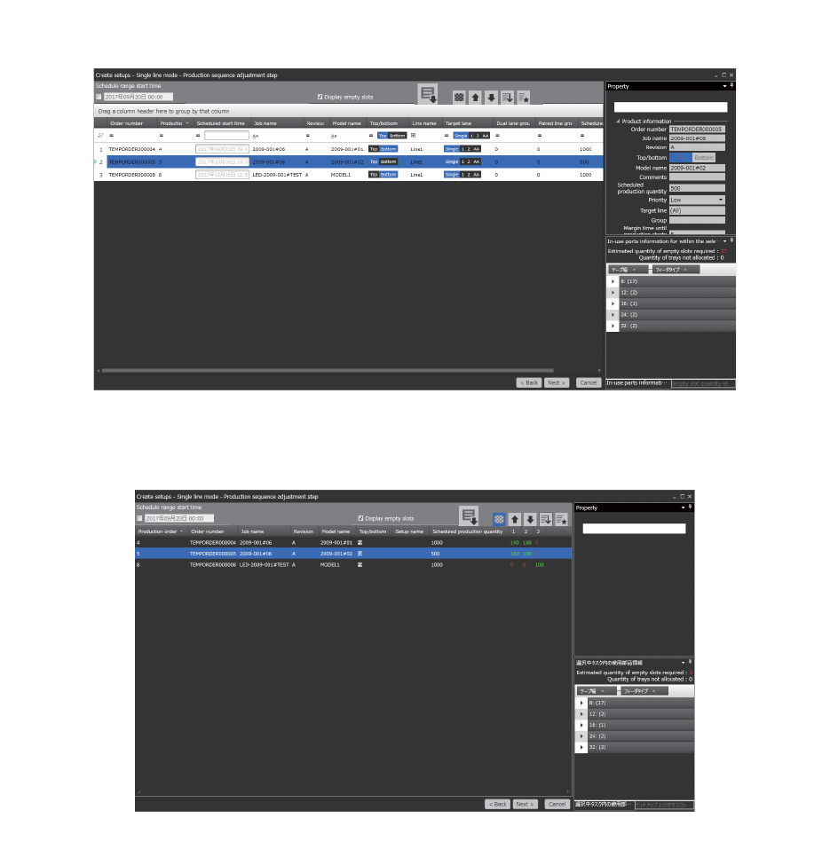 2. 想在下面的步骤确认使用的 Setup、多 Job 生产线平衡的结果后决定时请单击。详细内容 " 6.2.5 排产