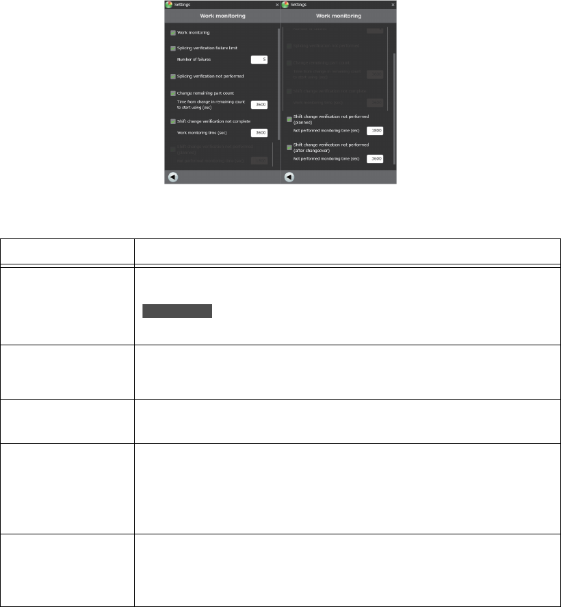 8. 进度 / 监控 / 分析 OPE-NEXIM-007S0 288 Nexim 操作手册 18. 成功率推移 进行在副画面上显示的成功率 进展图表的显示设定。 19. 监控作业 进行主画面 [ 作业监视 ] 的显示设定。 项目 说明 错误次数最大值 请设定直线图表 ( 错误次数图表 ) 的 Y 轴最大值。 成功率最大值 请设定折线图 ( 成功率进展 ) 的 Y 轴最大值。 成功率最小值 请设定折线图 ( 成功率进展 ) 的 Y 轴最…
