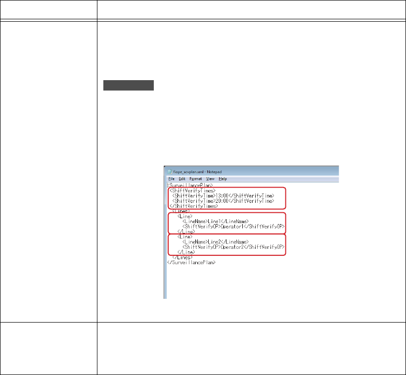 • 请用文本编辑器打开 "fiope_scvplan.xml",记述 [ 计划时间 ]、[ 实施生产线名 ]、[ 作业
