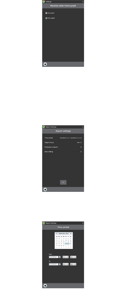 • 运转时间比例的显示 : 请选择在副画面的图表一览表上显示的 [ 机器状态 ] 图表的显示方法。