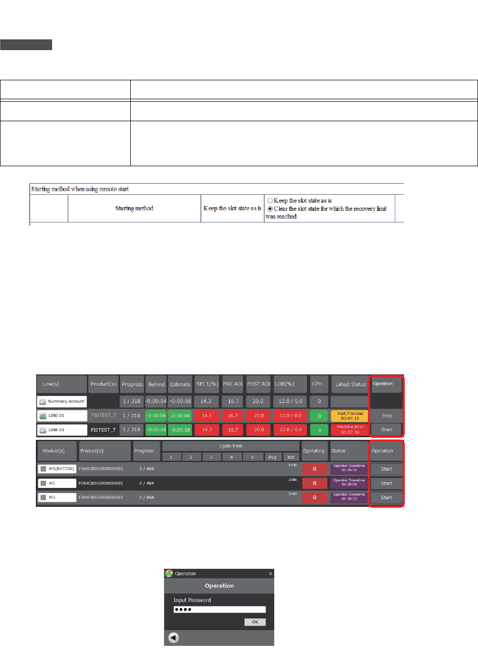 2. 请点击 [Operation] 下方的 [Start] 键。请解除可以恢复的错误并开始生产。