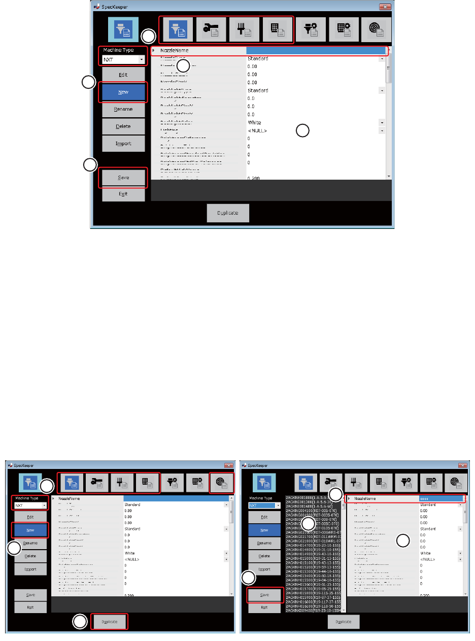10. 系统布局 OPE-NEXIM-007S0 364 Nexim 操作手册 10.3.2 编辑数据 本小节主要说明如何对已登录 的规格数据、设定数据进行编辑。 1. 请选择想要编辑的数据类型以及机器类型。 2. 请点击 [Edit] 键。在编辑画面上会出现数据编辑画面。 3. 请从编辑画面左侧的数据一览内选择想要编辑的数据。 4. 请对编辑画面右侧的数据内容进行编辑。 5. 请点击 [Save] 键。数据被自动保存。 10.3.3 …