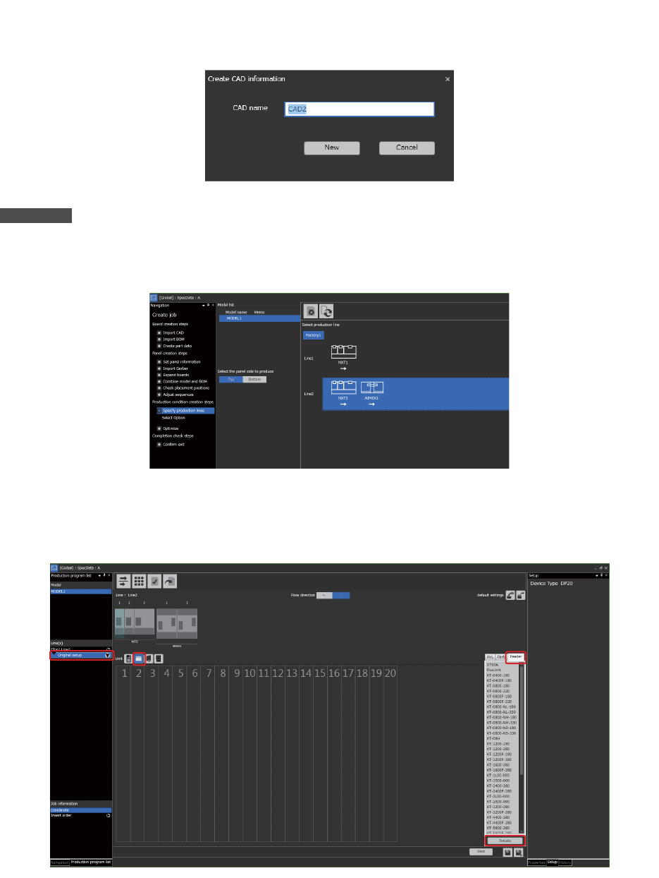 CAD 一个也没设定时,在生产条件创建步骤的 [ 生产线设定 ] 中不显示生产线。