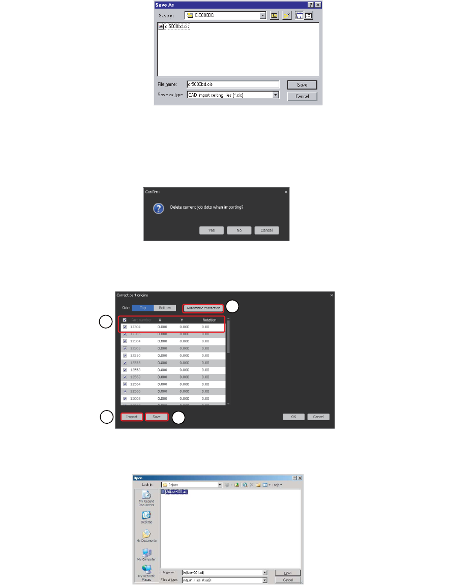 OPE-NEXIM-007S0 12. 读入 CAD 数据以及 BOM 数 据 Nexim 操作手册 381 e. 在 [Multi Board Sett ings] 分组框内会显示子电路板的坐标信息。 f. 为了今后可以使用设定好的数据 ,请点击 [Save...] 键。画面上弹出 [Save As] 对话框。请选择在这里 设定的文件并点击 [Save] 键。 4. 请点击 [CAD Import Settings(CR5000 Bo…