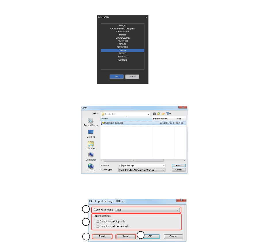 1. “CAD 选择 (Select CAD)” 对话框内选中 [ODB++] 并点击 [OK] 键。