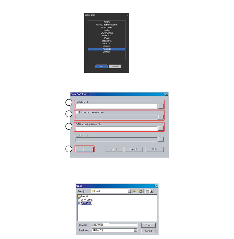 1. 在 “CAD 选择 (Select CAD)” 对话框内选中 [PanaCAD] 并点击 [OK] 键。