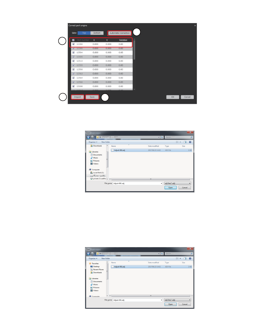 a. 如需读入补正值文件,则请点击 [Import] 键。画面上弹出 [Open] 对话框。请先选中补正值文件,